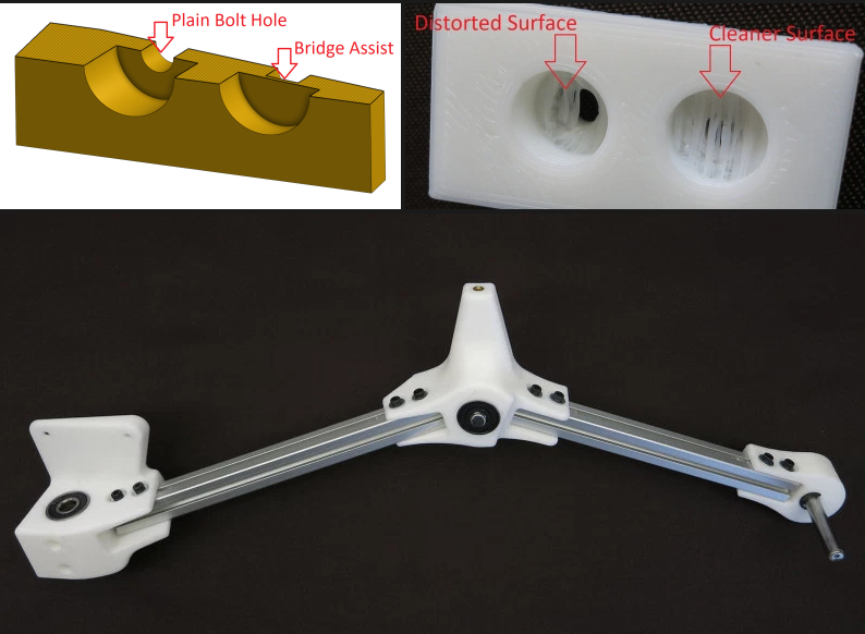 還有一點(diǎn)需要考慮的是,當(dāng)螺栓孔不能很好地與印刷床對(duì)齊時(shí),會(huì)突出。我們可以通過(guò)創(chuàng)建覆蓋螺栓孔的薄層(2-3層高度厚)來(lái)幫助我們的打印機(jī)橋接奇怪的螺栓頭表面,該螺栓孔可以在用于其目的之后通過(guò)鉆機(jī)清理。與典型的打印支持解決方案相比,這些打印機(jī)更容易拆卸并消耗更少的材料。