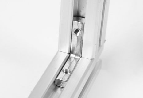 用于兩型材的直角連接,安裝時將其兩端分別插入型材槽坑內,將緊固螺絲鎖緊。根據(jù)型材的槽寬及連接方式請選用不同的角槽連接件。