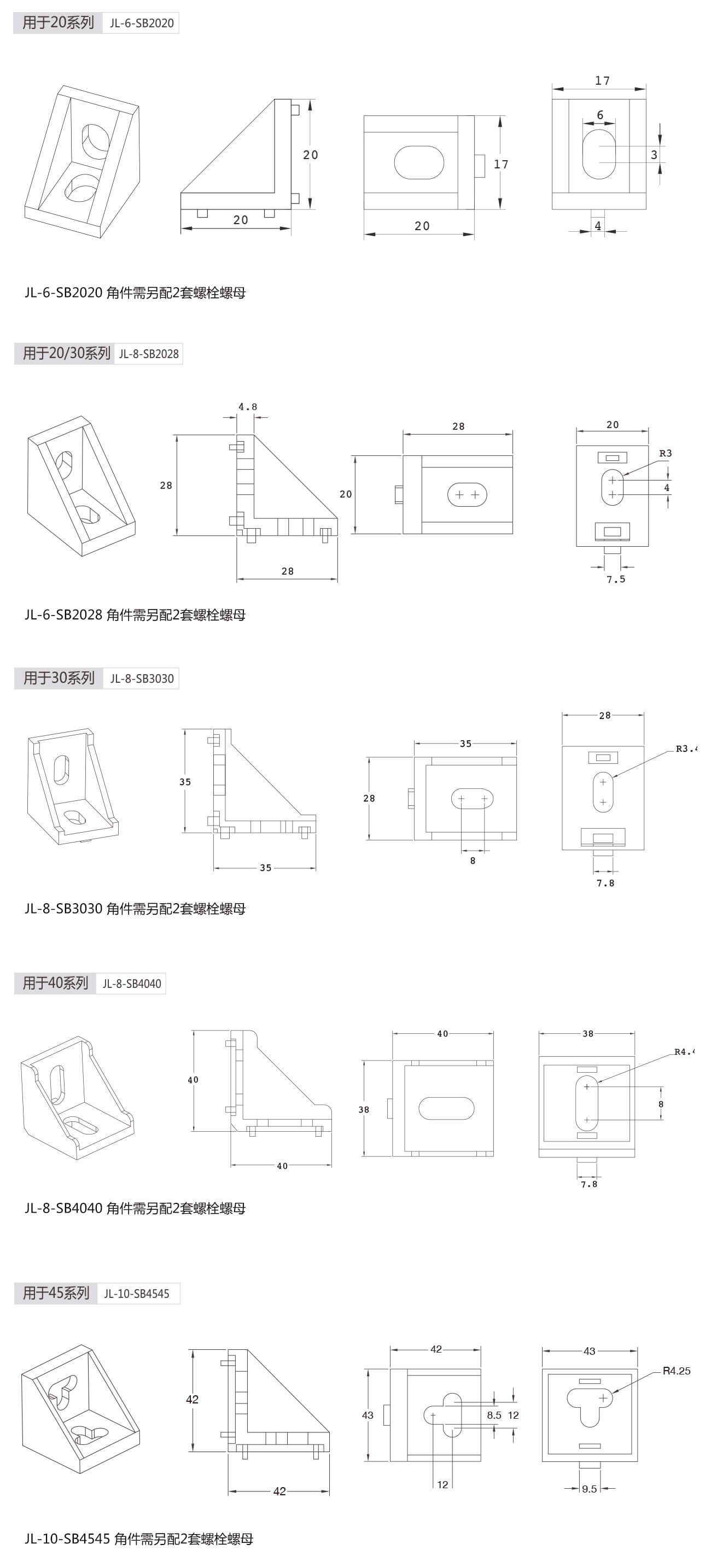 用于加強被連接型材點的支撐力,也可以用作需移動位置的型材連接方式。連接用的T型螺栓及螺母需另配。