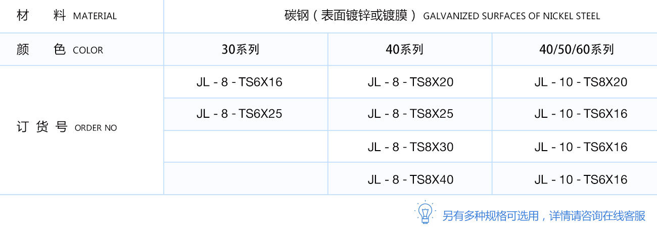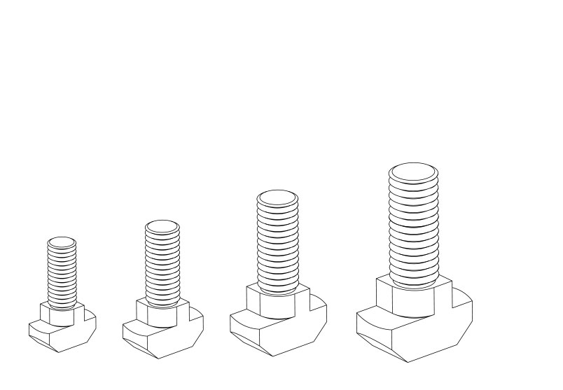 T型螺栓直接放入型材槽內(nèi),安裝過程中它能自動定位鎖緊,常與法蘭螺母配合使用,是安裝角件等型材配件的好幫手。根據(jù)不同型材,槽寬及按準(zhǔn)過要求可選用不同規(guī)格及長度的T型螺栓。
