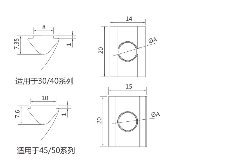 彈片螺母塊能被直接塞進(jìn)鋁型材槽坑中的任意裝配點(diǎn),他背部的彈片能撐起并固定它的位置,使安裝十分簡單且可靠,它是型材連接中使用較多的配件之一。