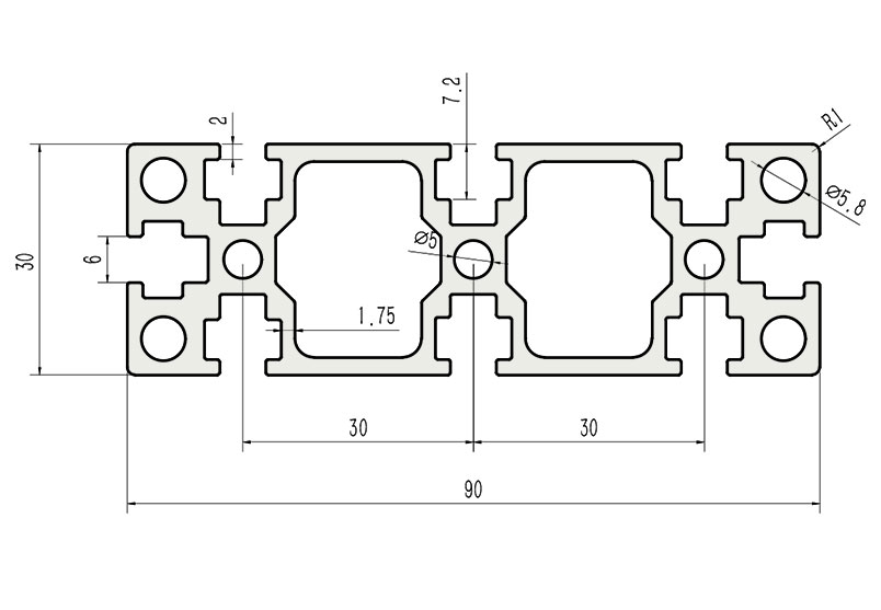 適用于應(yīng)力及強度較大的框架組合結(jié)構(gòu),它的外型采用直角過渡,表面經(jīng)過陽極氧化處理,高雅美觀并抗腐蝕,它通常采用M6X20高強度專用螺栓的內(nèi)部連接方式,堅固而又可靠,是工業(yè)框架應(yīng)用較為廣泛的型材之一。