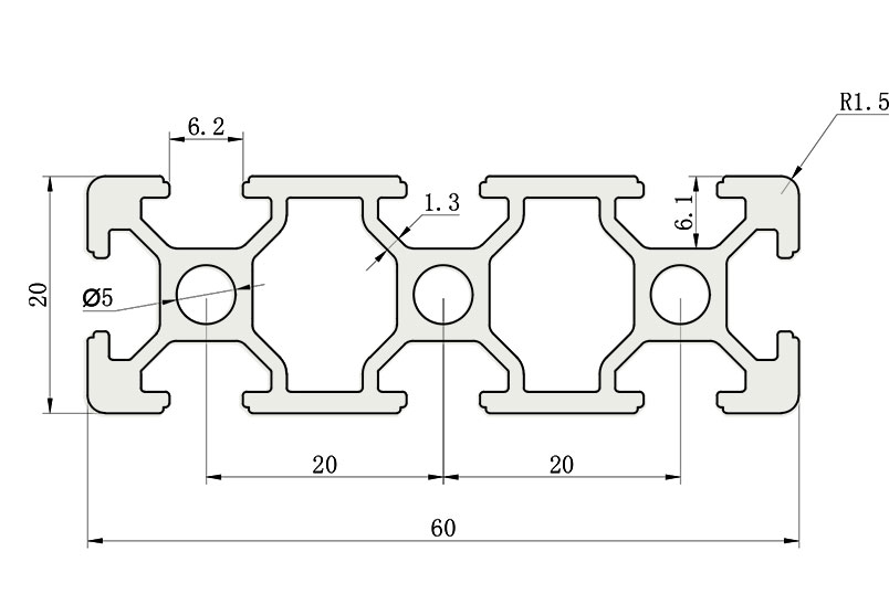 適用于應(yīng)力及強(qiáng)度較大的框架組合結(jié)構(gòu),它的外型采用圓角過(guò)渡,表面經(jīng)過(guò)陽(yáng)極氧化處理,高雅美觀并抗腐蝕,它通常采用M6X20高強(qiáng)度專(zhuān)業(yè)螺栓加彈性扣件的內(nèi)部連接方式,堅(jiān)固又可靠,是工業(yè)框架應(yīng)用廣泛的型材之一。