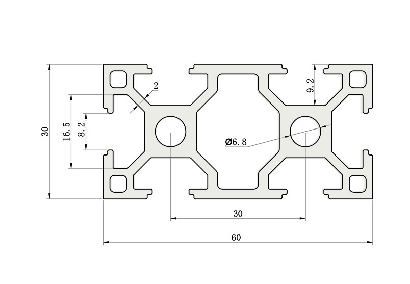 適用于應(yīng)力及強(qiáng)度較大的框架組合結(jié)構(gòu),它的外型采用圓角過渡,表面經(jīng)過陽(yáng)極氧化處理,高雅美觀并抗腐蝕,它通常采用M8X20高強(qiáng)度專用螺栓加彈性扣件的內(nèi)部連接方式,堅(jiān)固而又可靠,是工業(yè)框架應(yīng)用較為廣泛的型材之一。