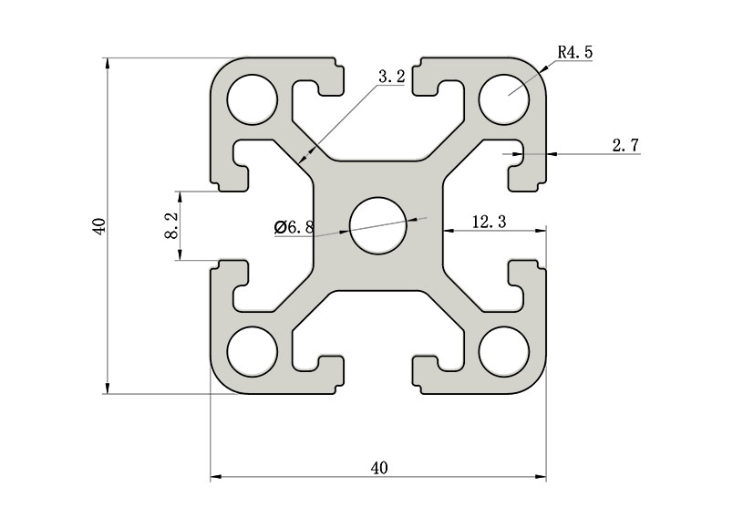 適用于應(yīng)力及強(qiáng)度較大的框架組合結(jié)構(gòu),它的外型采用圓角過(guò)渡,表面經(jīng)過(guò)陽(yáng)極氧化處理,高雅美觀并抗腐蝕,它通常采用M8X20高強(qiáng)度專用螺栓加彈性扣件的內(nèi)部連接方式,堅(jiān)固而又可靠,是工業(yè)框架應(yīng)用較為廣泛的型材之一。