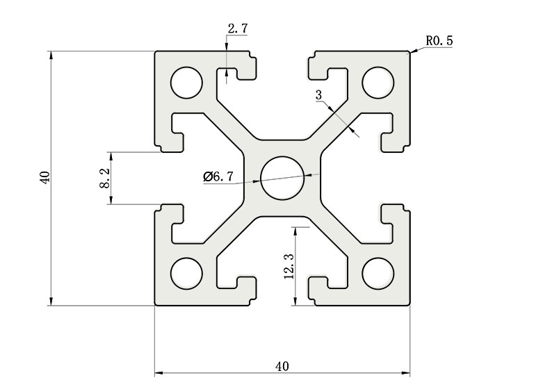 適用于應(yīng)力及強(qiáng)度較大的框架組合結(jié)構(gòu),它的外型采用圓角過渡,表面經(jīng)過陽(yáng)極氧化處理,高雅美觀并抗腐蝕,它通常采用M8X20高強(qiáng)度專用螺栓加彈性扣件的內(nèi)部連接方式,堅(jiān)固而又可靠,是工業(yè)框架應(yīng)用較為廣泛的型材之一。
