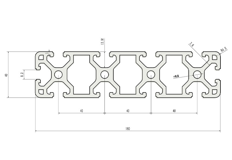 適用于應(yīng)力及強(qiáng)度較大的框架組合結(jié)構(gòu),它的外型采用圓角過渡,表面經(jīng)過陽(yáng)極氧化處理,高雅美觀并抗腐蝕,它通常采用M8X20高強(qiáng)度專用螺栓加彈性扣件的內(nèi)部連接方式,堅(jiān)固而又可靠,是工業(yè)框架應(yīng)用較為廣泛的型材之一。