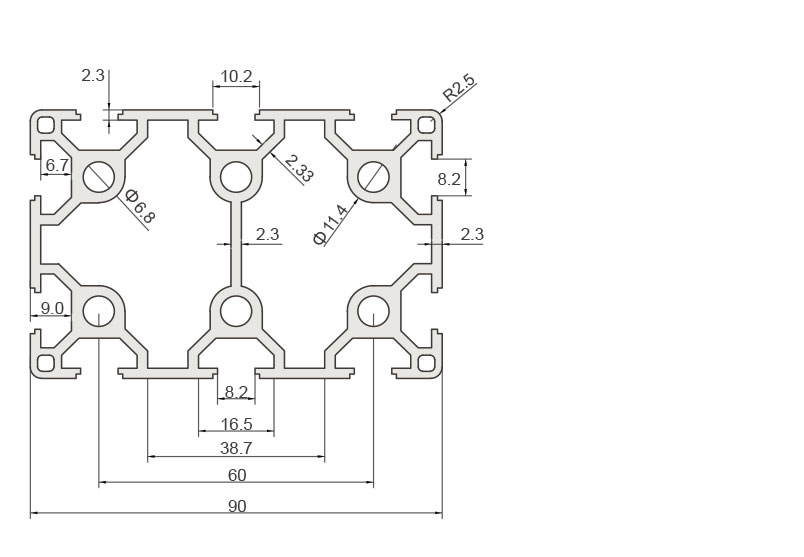 JL-8-6090E,8mm 槽寬工業(yè)鋁型材系列